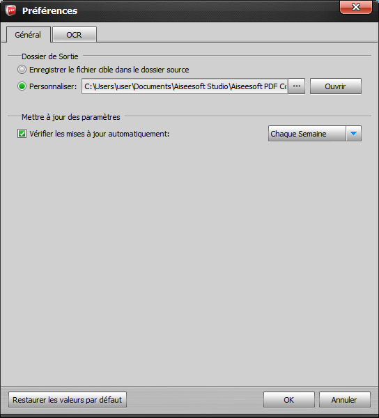 Pour obtenir le fichier exact que vous voulez, vous pouvez spécifier les pages dont vous avez besoin, et vous pouvez aussi choisir à convertir toutes les pages. En outre, Et pour les réglages de "Préférences", OCR vous permet de choisir la mode de conversion et la langue de la sortie. Ce PDF Convertisseur supporte les multi-langues: anglais, japonais, chinois, allemande, italien, espagnol, coréen, grec, cyrillique, arabe, turc, thaï, et latin etc.