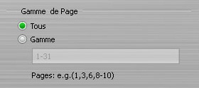 Sélectionnez les pages que vous voulez convertir pour les fichiers sélectionnés: toutes les pages et vos pages autodéfinies. Vous pouvez aussi saisir les numéros de pages séparés par des virgules dans l'option "Gamme".